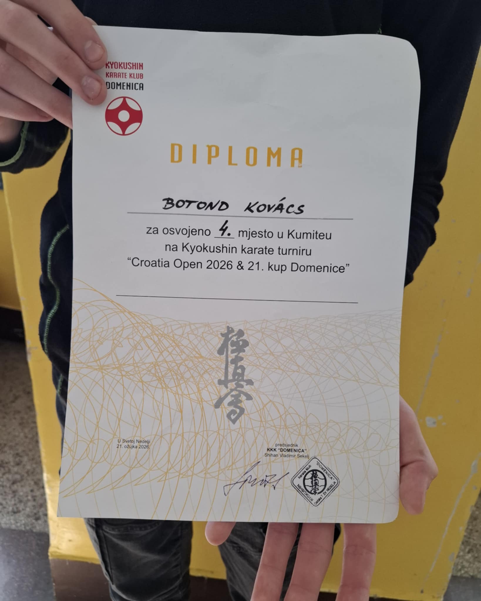 Kovács Boti, iskolánk 7.s osztályos tanulója 4. helyezést ért el egy Horvátországban rendezett karate kupán. Lassan, Boti is elszámol végtelenig. Kétszer.